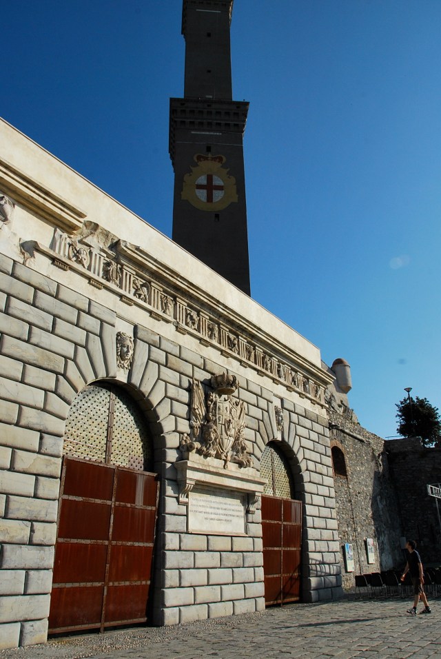Genoa’s crowning glory, the lighthouse. The most famous lighthouse in the whole of Italy. The visitors info can be found here. Featured right in front is the Porta Nuova. The description found next to this wall is as follows :-